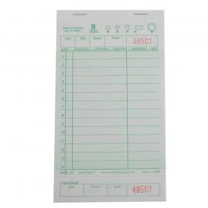 National Checking Company Guest Check Paper – 1 Part Green, 16 Line, 3.5 x 6.75 inch — 5000 per case. GUESTCHECK (3.5″ x 6.75″) has 16 lines with a “Menu Prompt” for better customer service. A numbered receipt stub is used for accounting purposes.