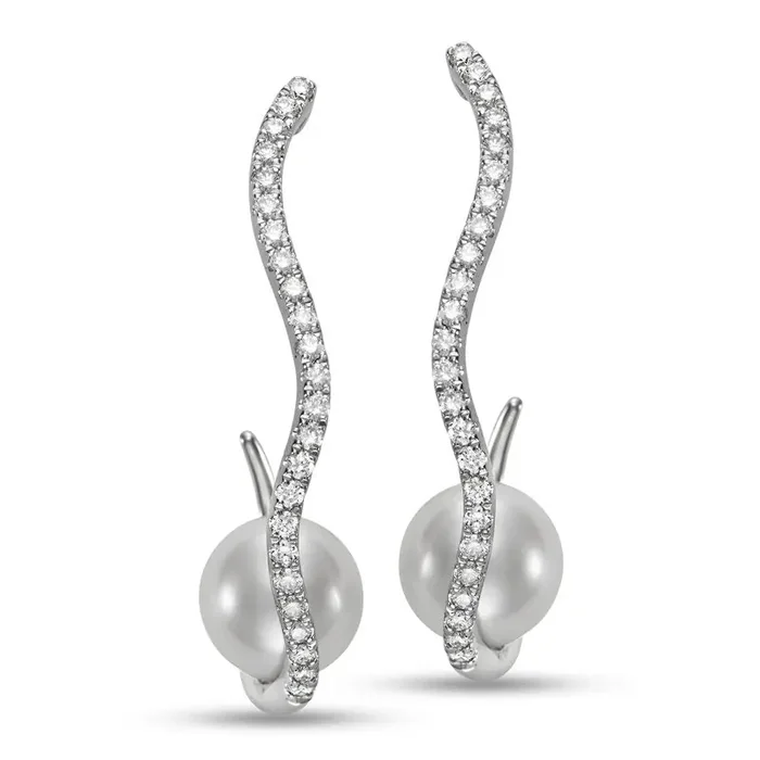 This 34″ long station necklace has 19 8-8.5mm fresh water pearls accented with tiny diamond caps having a total weight of 0.34ct.