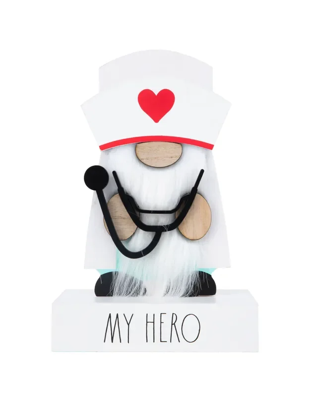 Halloween vibe is nicely represented in this Rae Dunn gnome. The gnome dresses in black and orange colors, both tones highly associated with Halloween. Its hat shows the phrase “Spooky!” on it, playfully suggesting that the gnome is part of a frightening atmosphere. Lastly, the gnome is holding a Jack-o’-Lantern, further accentuating its Halloween-themed since this symbol is commonly seen during this season.