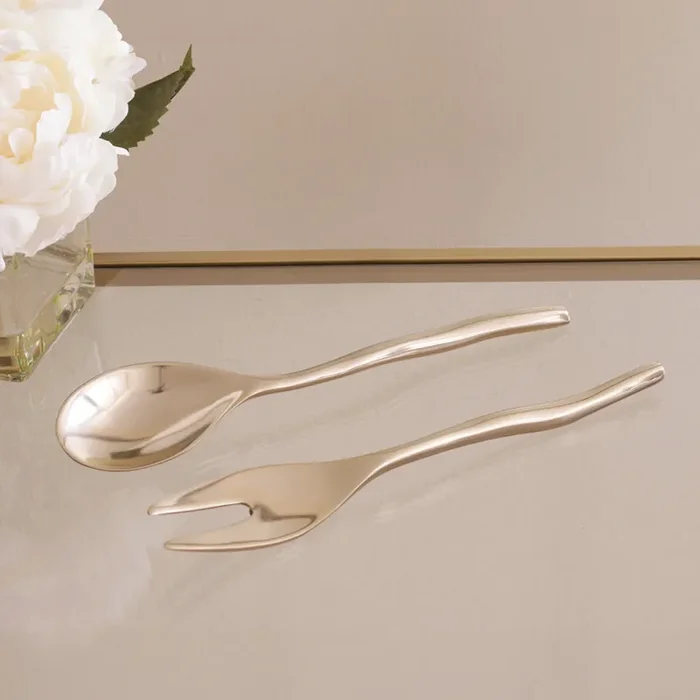 The Resin White Swirl Salad Servers brings sculptural elegance to the table with its flowing lines and luminous swirl pattern. Crafted from durable resin, each piece is designed for serving cold or low-temperature dishes with ease and style. Not suitable for hot foods. Handwash recommended.