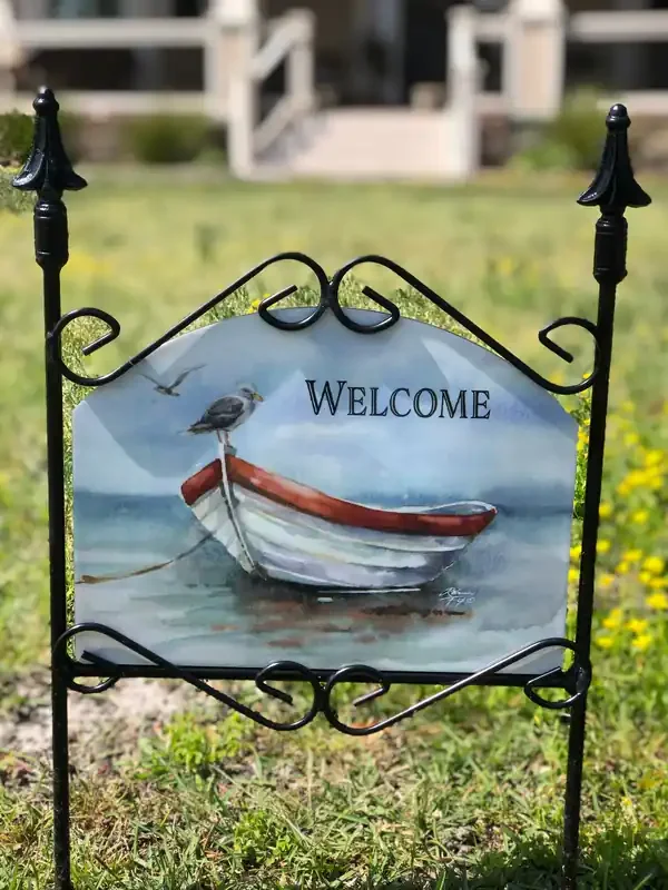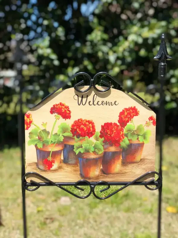 These beautiful garden signs are handcrafted in the USA.  Each sign is a composite panel made of double-sided painted aluminum panels bonded to a solid ¼” polyethylene core, making them rigid yet lightweight.