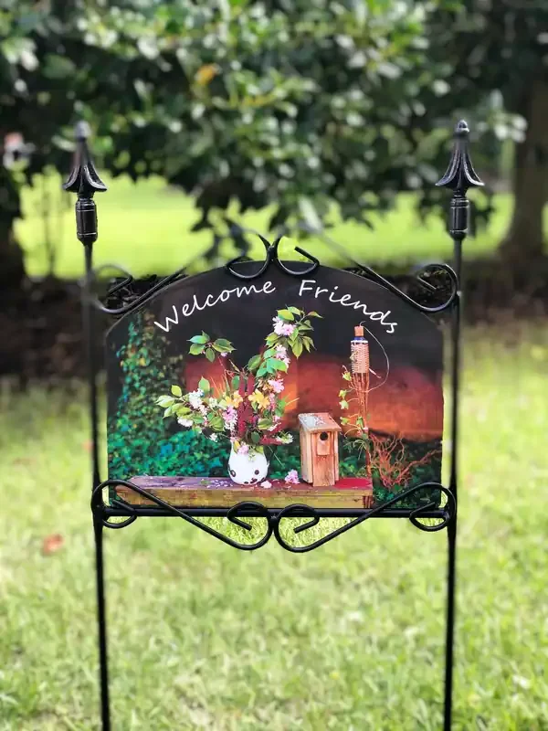 These beautiful garden signs are handcrafted in the USA.  Each sign is a composite panel made of double-sided painted aluminum panels bonded to a solid ¼” polyethylene core, making them rigid yet lightweight.